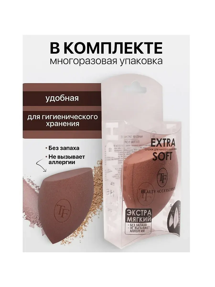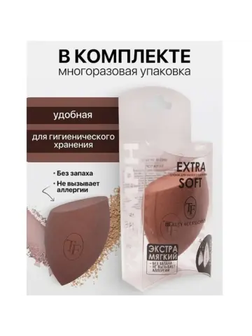 TF Спонж для макияжа экстра мягкий MAKE-UP EXTRA SOFT SPONGE nude cappuccino. Экстра мягкий спонж для нанесения макияжа. Необычайно мягкий материал и удобная форма делают этот спонж универсальным помощником для нанесения макияжа на любой тип кожи, включая тонкую и нежную. Округлые бока спонжа распределяют тональную основу на больших поверхностях лица, заостренный кончик точечно маскирует несовершенства, а плоский срез позволяет вплотную подобраться к областям под глазами и крыльям носа. Идеально для нанесения кремовых, жидких и пудровых текстур. Технология использования «намочить-сжать-нанести» позволяет равномерно и экономно наносить тональные, корректирующие средства.