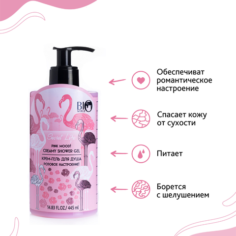Bio World Secret Life Крем-гель для душа "Розовое настроение" 445мл