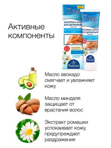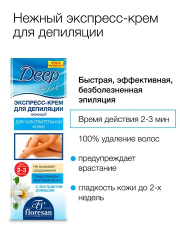 Floresan DEEP DEPIL Нежный экспресс-крем для депиляции для чувствительной кожи,100мл