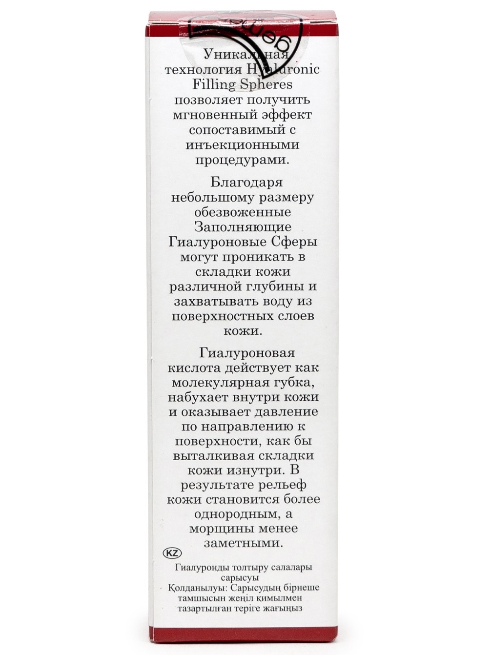 Гель-сыворотка позволяет получить мгновенный эффект омоложения, сопоставимый с инъекционными процедурами. Гиалуроновая кислота проникает в складки кожи различной глубины, заполняя их и разглаживая морщины. В результате рельеф дермы становится более однородным, а лицо выглядит молодым и отдохнувшим.