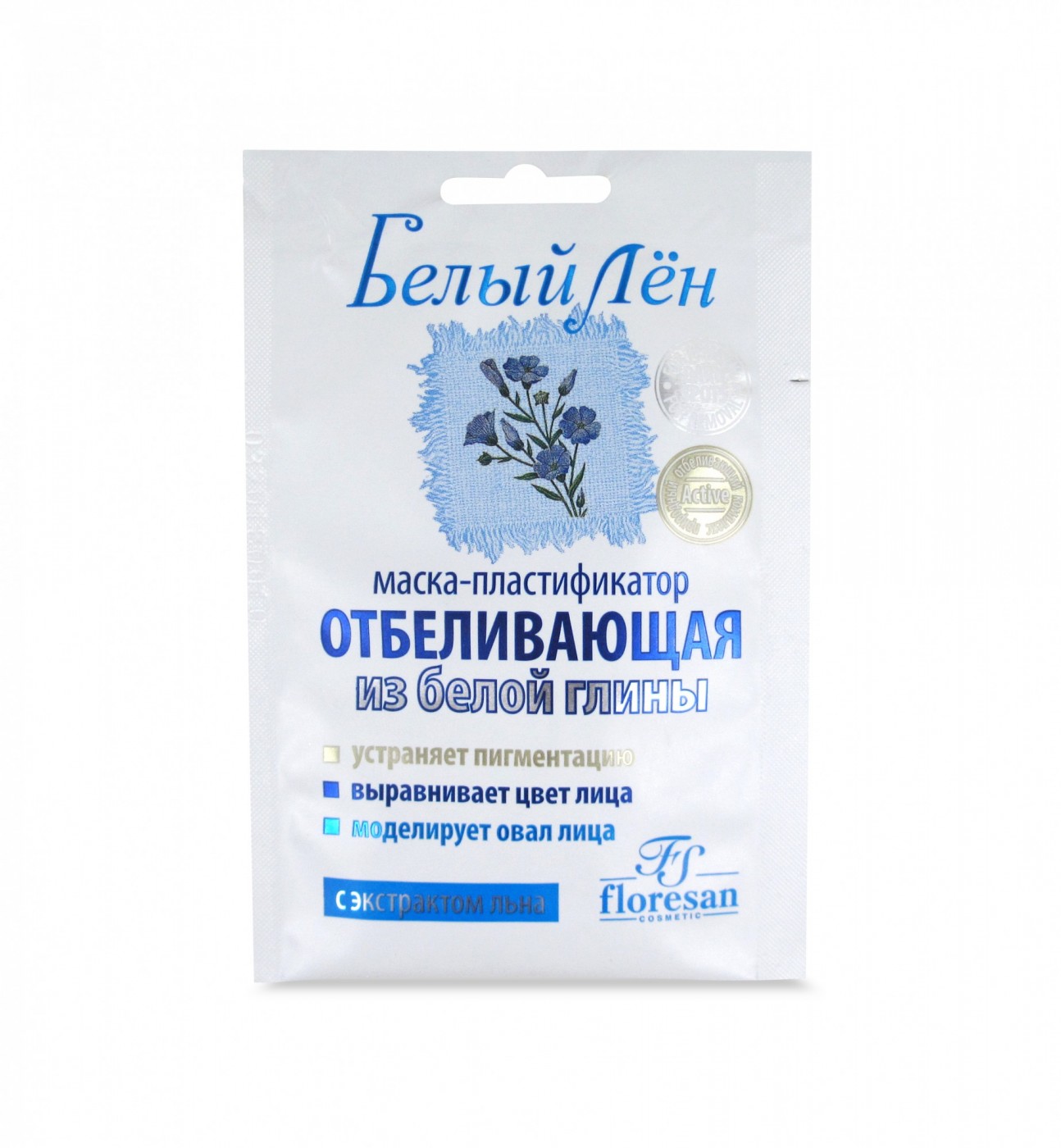 Floresan БЕЛЫЙ ЛЕН Маска-пластификатор отбеливающая из белой глины,10 саше по 15мл