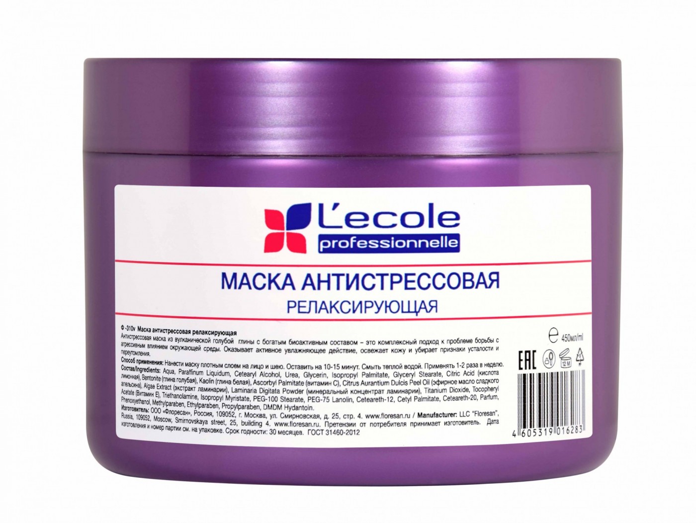 Floresan L`ECOLE Маска антистрессовая релаксирующая из вулканической голубой глины 450мл