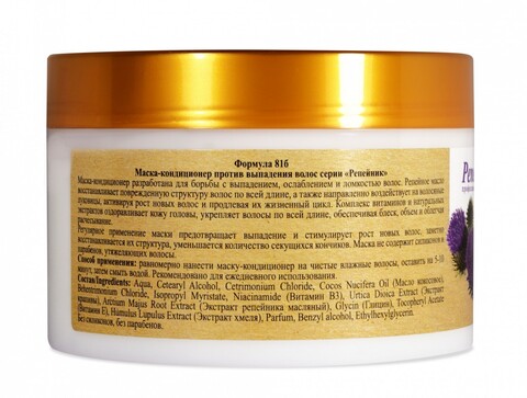 Маска-кондиционер разработана для борьбы с выпадением, ослаблением и ломкостью волос. Репейное масло восстанавливает поврежденную структуру волос по всей длине, а также направленно воздействует на волосяные луковицы, активируя рост новых волос и продлевая их жизненный цикл. Комплекс витаминов и натуральных экстрактов оздоравливает кожу головы, укрепляет волосы по всей длине, обеспечивая блеск, объем и облегчая расчесывание.