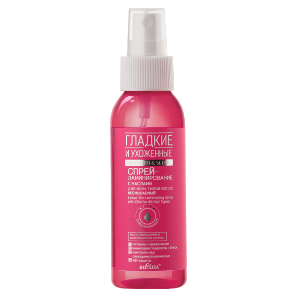 Спрей интенсивно питает и увлажняет волосы, предотвращает появление секущихся кончиков, защищает от термовоздействия при укладке феном.