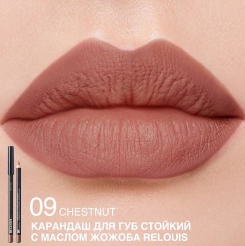 RELOUIS Карандаш для губ стойкий с маслом жожоба тон 09 chestnut (Италия)