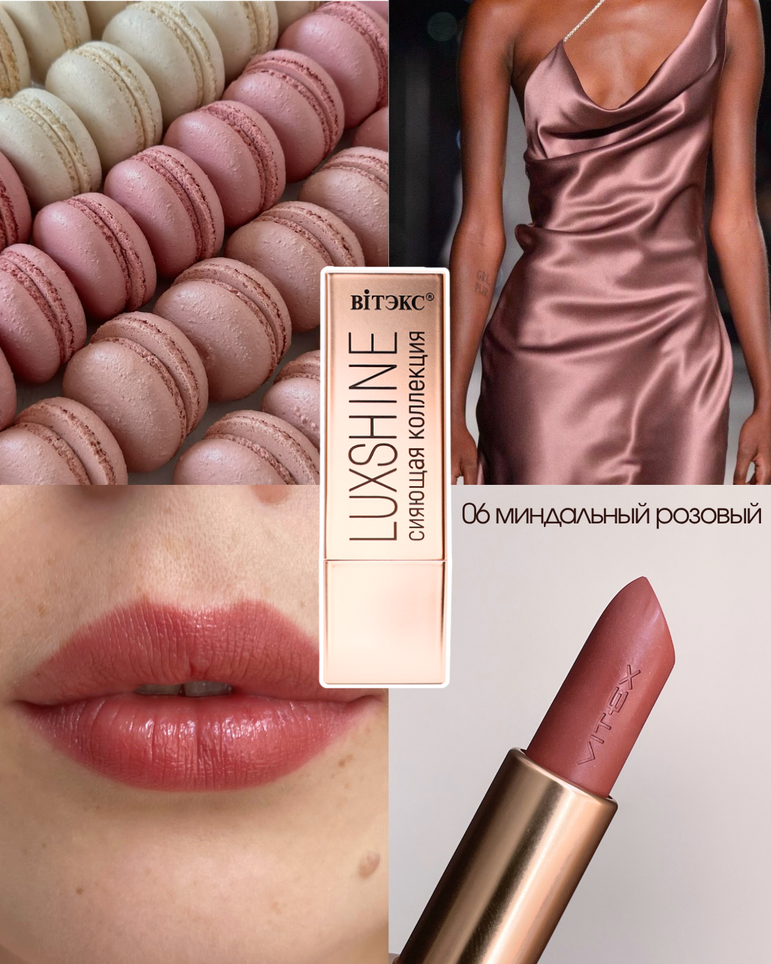 VITEX LUXSHINE Помада-блеск для губ Сияющая коллекция, Тон 06 Миндальный розовый