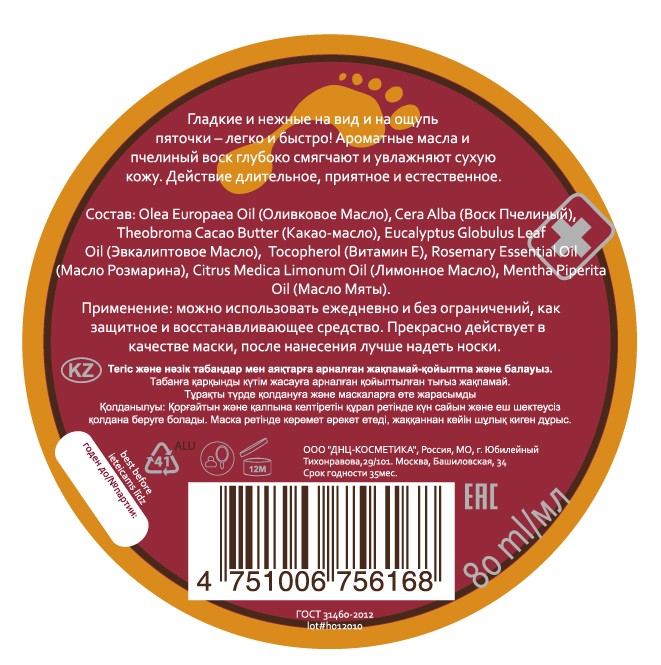 Гладкие и нежные на вид и на ощупь пяточки – легко и быстро! Ароматные масла и пчелиный воск глубоко смягчают и увлажняют сухую кожу. Действие длительное, приятное и естественное.