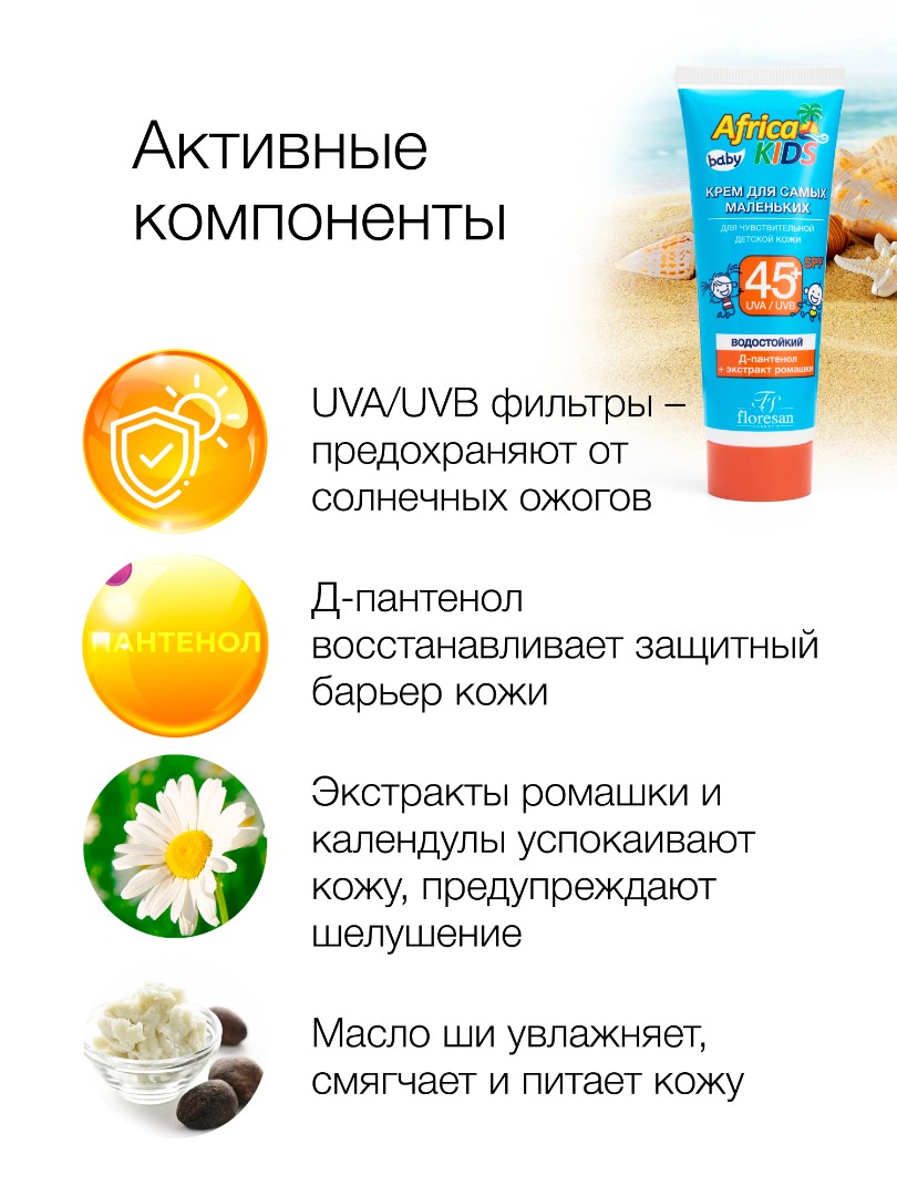 Floresan Солнцезащитная серия AFRICA KIDS Крем для самых маленьких SPF 45+, 50мл