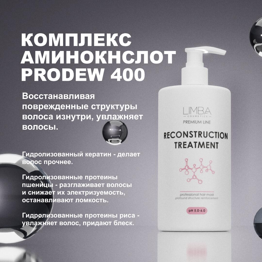 Маска-реконструктор для волос Limba Cosmetics Premium Line Reconstruction Treatment - это состав для проведения процедур холодного восстановления. Состав обеспечивает глубокое восстановление волос за счет высокого содержания белка, который проникает вглубь волоса, укрепляя его изнутри. Комплекс аминокислот в составе обладает сильным увлажняющим свойством, наполняет волосы влагой и способствует её удержанию внутри.