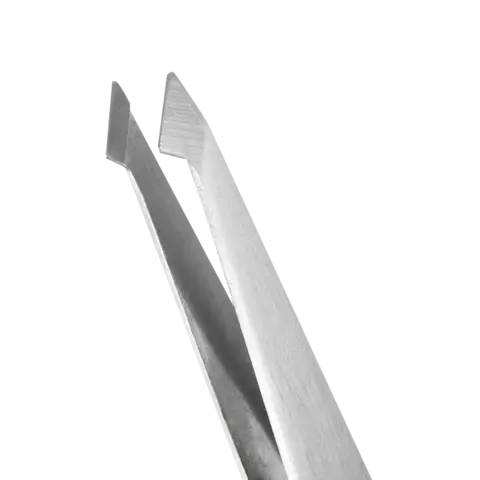 Скошенный пинцет универсален, им можно корректировать границы бровей, а также удалять нежелательные волоски с переносицы и височной зоны. Они добираются до труднодоступных мест и с легкостью удаляют вросшие волоски.