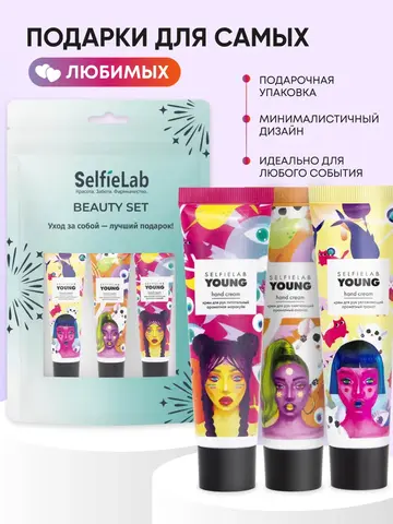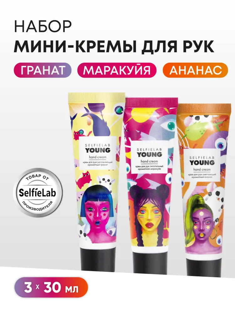 Selfielab Подарочный набор YOUNG Крем для рук Ароматная маракуйя, Ананас и Гранат, 90г (12+)
