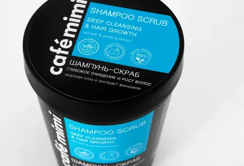 Шампунь-скраб для глубокого очищения и роста волос Cafe Mimi Deep Cleansing&Hair Growth содержит морскую соль. Она обладает питательным и отшелушивающим эффектом, избавляет от перхоти. За счет этого продукт Cafe Mimi нормализует липидный баланс и уменьшает жирность. Вытяжка из ламинарии в шампуне-скрабе для глубокого очищения способствует увлажнению по всей длине до кончиков и стимулирует рост волос. Женьшеневый экстракт в Deep Cleansing&Hair Growth напитывает пряди и придает им сияние. Локоны становятся более сильными и гладкими.