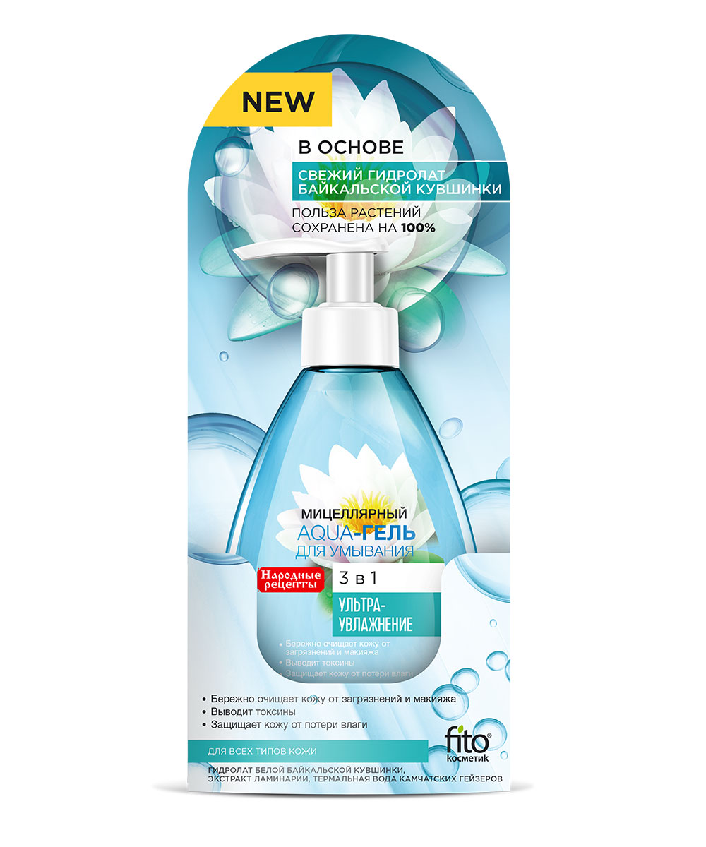Мицеллярный aqua-гель для умывания «Народные Рецепты» бережно очищает кожу и эффективно без усилий снимает макияж, придавая коже гладкость и тонус. Гидролат байкальской кувшинки сохранил 100% природной пользы дикого цветка, который тонизирует кожу, выводит токсины и возвращает коже свежий цветущий вид. Термальная камчатская вода и экстракт ламинарии глубоко питают и увлажняют кожу, придавая ей роскошную гладкость. Aqua-гель – народный рецепт здоровой, чистой и красивой кожи.