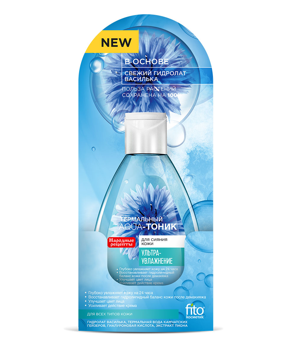Термальный Aqua-тоник «Народные Рецепты» – это тонизирующий «водопад» из свежих гидролатов для ультраувлажнения и сияния кожи. В основе тоника – гидролат василька, который восстанавливает гидролипидный баланс кожи и дарит коже свежесть в течение всего дня. Термальная вода камчатских гейзеров питает кожу целым комплексом микроэлементов, придавая ей ухоженный и отдохнувший вид. Гиалуроновая кислота, проникая в глубокие слои кожи, интенсивно увлажняет и подтягивает кожу. Ваша кожа приобретает невероятную гладкость и сияние!