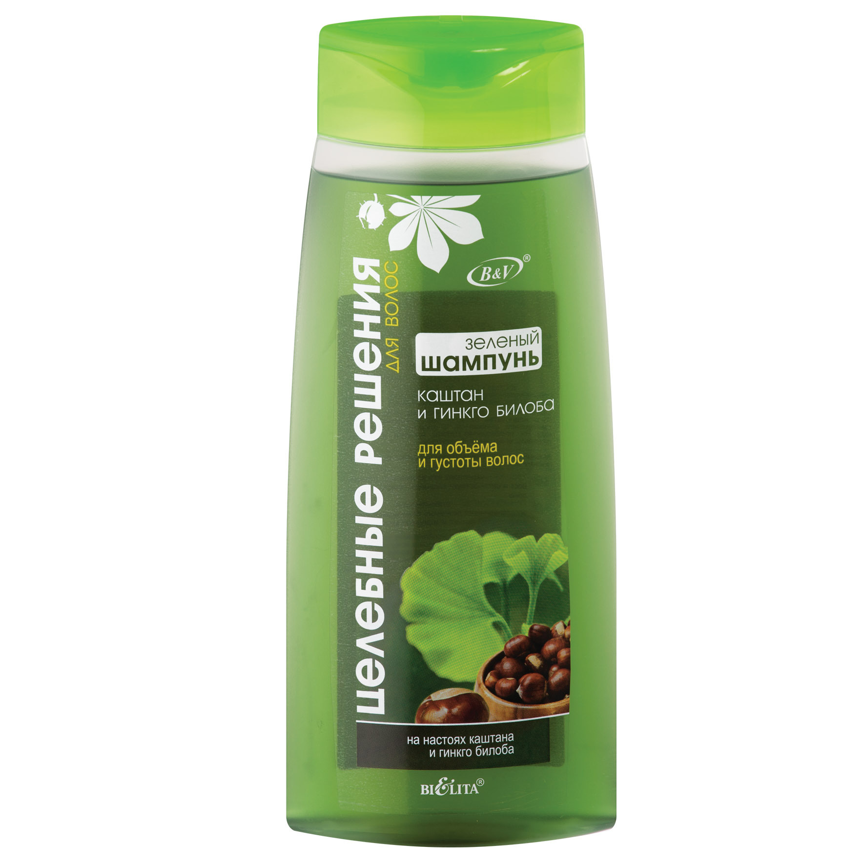 Зелёный ШАМПУНЬ для объёма и густоты волос Каштан и гинкго билоба великолепно ухаживает за тонкими и слабыми волосами. Основан на растительных настоях каштана и гинкго билоба, которые восстанавливают структуру волос и делают их более объёмными и сильными.