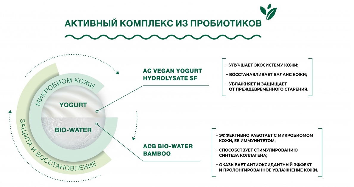Линия продуктов по уходу за лицом на основе гидролизированного протеина кокосового йогурта и бамбуковой воды, полученные путем ферментации пробиотическими бактериями