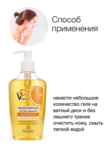 Идеальное средство для бережного и эффективного очищения кожи. Ультрамягкая мицеллярная формула геля великолепно очищает кожу от макияжа и загрязнений, не нарушая гидролипидный баланс. Мицеллы, как магнит, обладают способностью захватывать загрязнения с поверхности кожи, а затем легко смываются теплой водой. Гиалуроновая кислота глубоко увлажняет и заметно улучшает состояние кожи, возвращая ощущение свежести, мягкости и комфорта. Экстракт апельсина осветляет тон кожи и освежает цвет лица. Комплекс витаминов оказывает тонизирующее действие, смягчает и ревитализирует кожу.